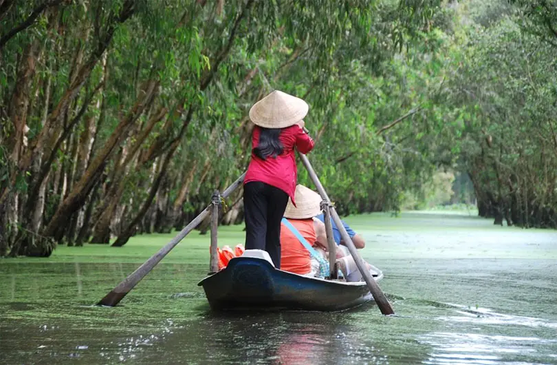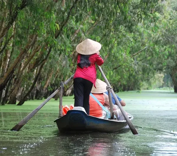Embark on a 2 km trek through the mangrove forest to Chiến Khu Rừng Sác, a historic war site.