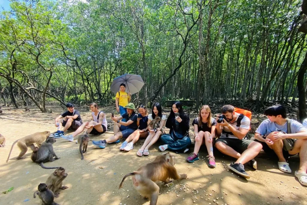 One of the main attractions of Can Gio Monkey Island is the thousands of monkeys living freely in the wild. Visitors can interact with them, feed them, and take fun photos. In addition, you can explore the mangrove forest by boat, visit Monkey Island, the historical Rung Sac Guerrilla Base, and observe the unique aquatic wildlife.